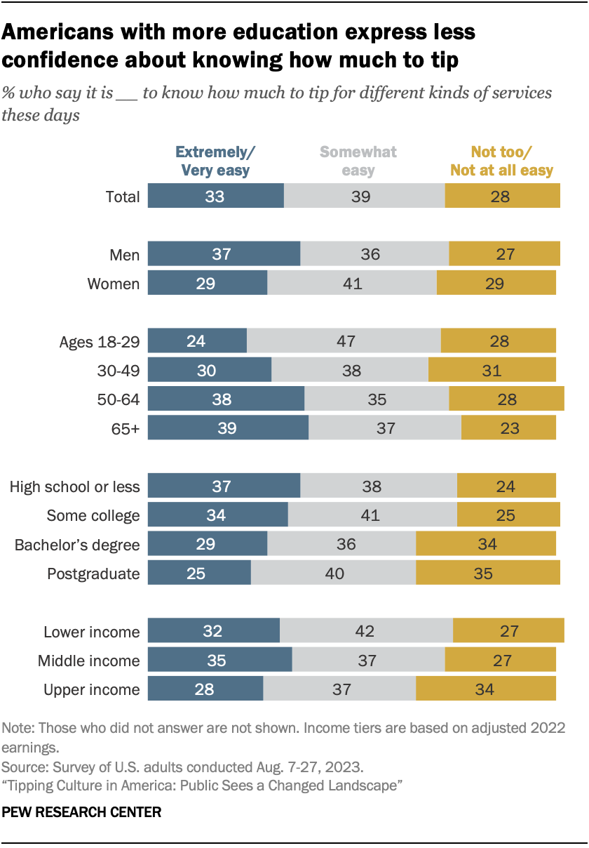 DownloadAmericans with more education express less confidence about knowing how much to tip ← Prev Page 1 2 3 Next Page →