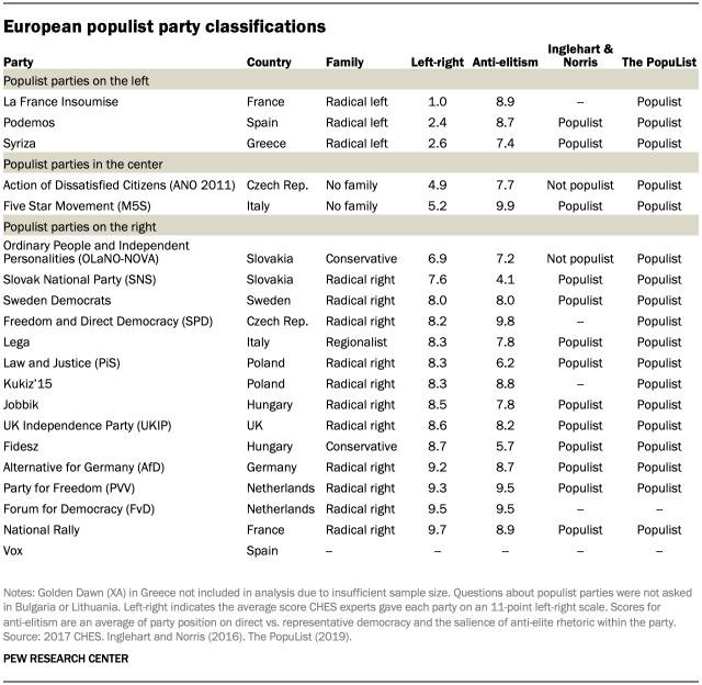 Classifying parties as populist