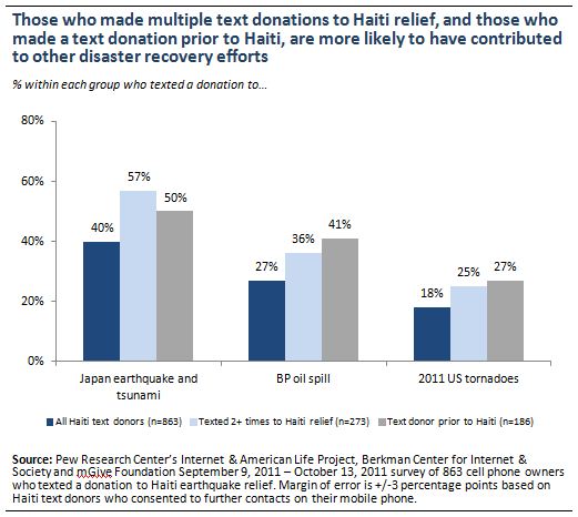 More than half of these mobile donors made text contributions to other disaster recovery efforts following the Haiti earthquake