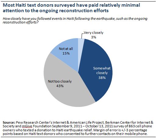 Most of the Haiti text donors surveyed have not closely followed the post-earthquake reconstruction efforts