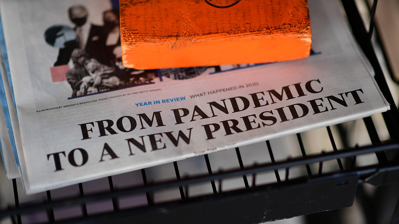 DownloadThe front page headline of a newspaper states “FROM PANDEMIC TO A NEW PRESIDENT” on December 31, 2020 in Rehoboth Beach, Delaware. (Mark Makela/Getty Images) ← Prev Page 1 2 Next Page →