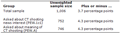 Much of the analysis in this report is based on telephone interviews conducted December 13-16, 2012, among a national sample of 1,006 adults 18 years of age or older living in the continental United States (601 respondents were interviewed on a landline telephone, and 405 were interviewed on a cell phone, including 191 who had no landline telephone). Questions about the shooting at an elementary school in Connecticut were added on Friday and were answered by a smaller number of respondents (see table below.) The survey was conducted by interviewers at Princeton Data Source under the direction of Princeton Survey Research Associates International. A combination of landline and cell phone random digit dial samples were used; both samples were provided by Survey Sampling International. Interviews were conducted in English. Respondents in the landline sample were selected by randomly asking for the youngest adult male or female who is now at home. Interviews in the cell sample were conducted with the person who answered the phone, if that person was an adult 18 years of age or older. For detailed information about our survey methodology, see: https://beta.pewresearch.org/pewresearch-org/politics/methodology/.