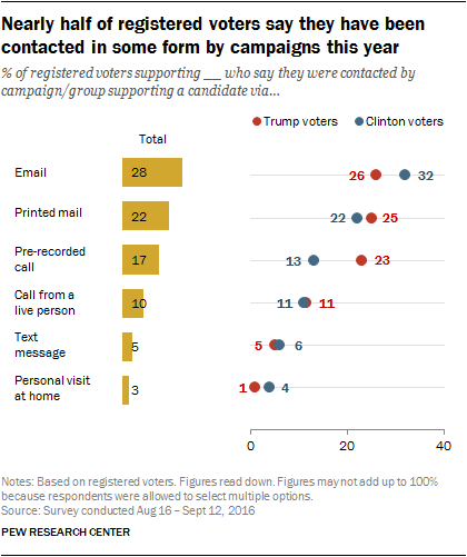 Some forms of outreach are more common than others – with some key differences in the ways Donald Trump and Hillary Clinton supporters have been reached by the campaigns.