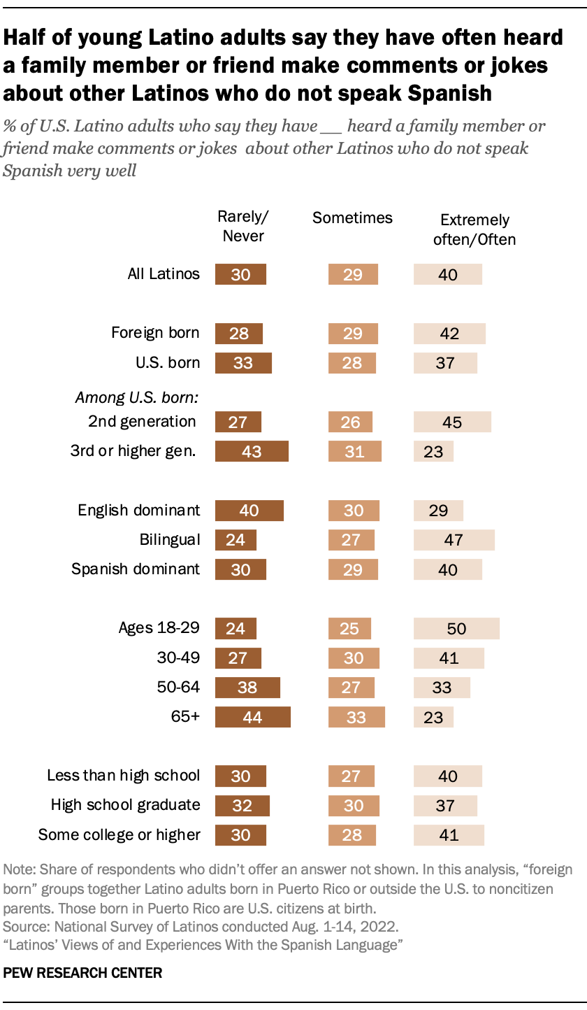 DownloadHalf of young Latino adults say they have often heard a family member or friend make comments or jokes about other Latinos who do not speak Spanish ← Prev Page 1 … 4 5 6 7 8 … 15 Next Page →