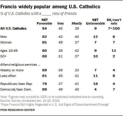 Pope Francis remains popular among a variety of Catholic and non-Catholic groups