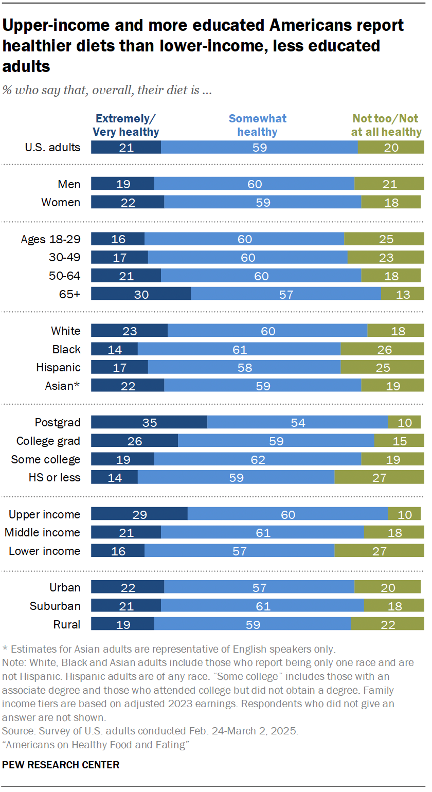 DownloadUpper-income and more educated Americans report healthier diets than lower-income, less educated adults ← Prev Page Array Next Page →
