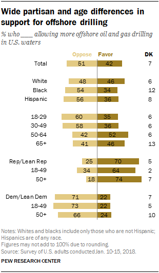 More Americans now oppose (51%) than favor (42%) allowing more offshore oil and gas drilling in U.S. waters, according to a Pew Research Center survey conducted in mid-January. The share of Americans who favor expanded offshore oil and gas drilling has declined 10 percentage points since 2014.
