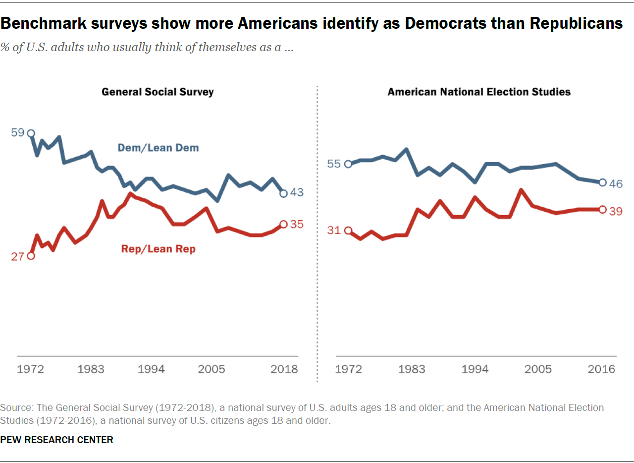 Benchmark surveys show more Americans identify as Democrats than Republicans