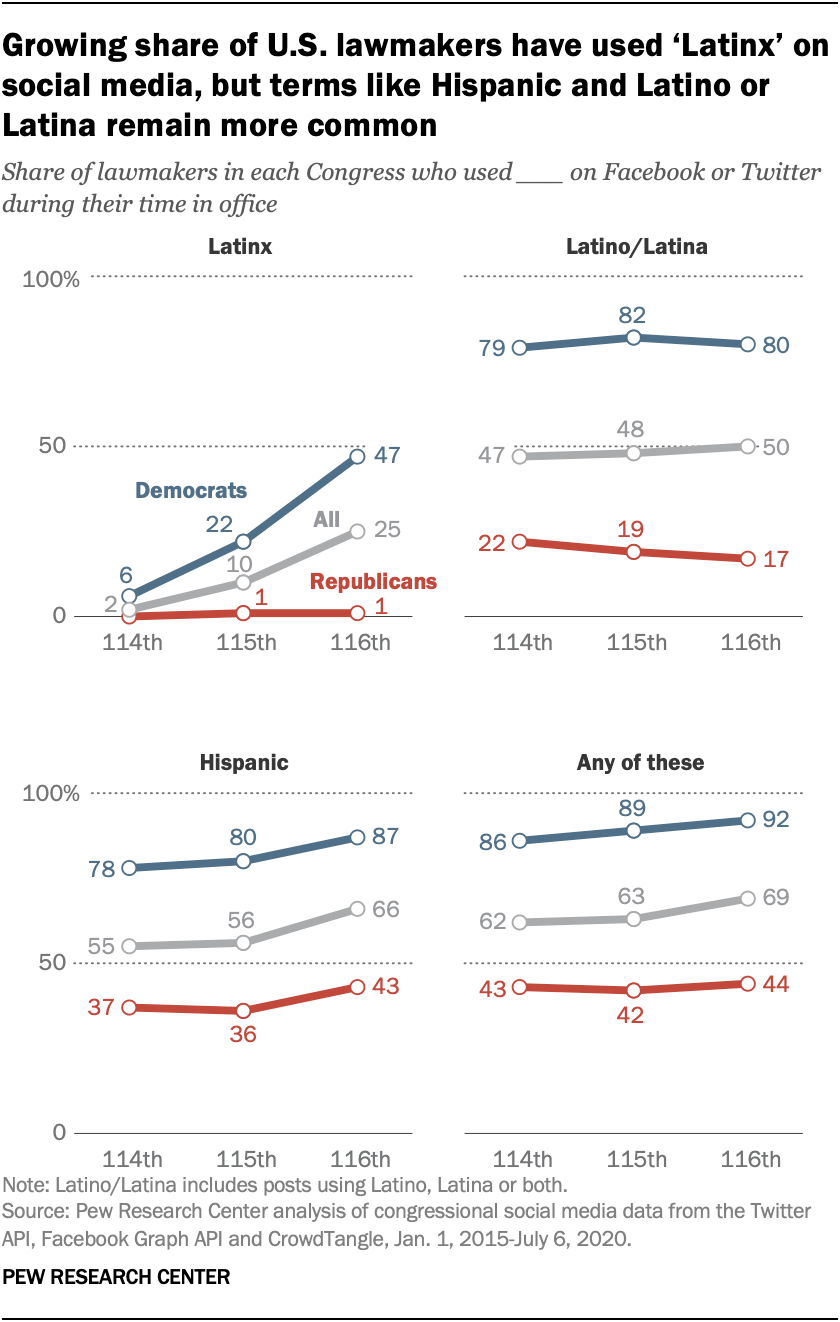 DownloadGrowing share of U.S. lawmakers have used ‘Latinx’ on social media, but terms like Hispanic and Latino or Latina remain more common ← Prev Page 1 2 3 Next Page →