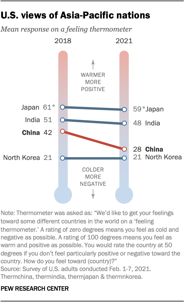 Americans’ views of Asia-Pacific nations have not changed since 2018 – with the exception of China