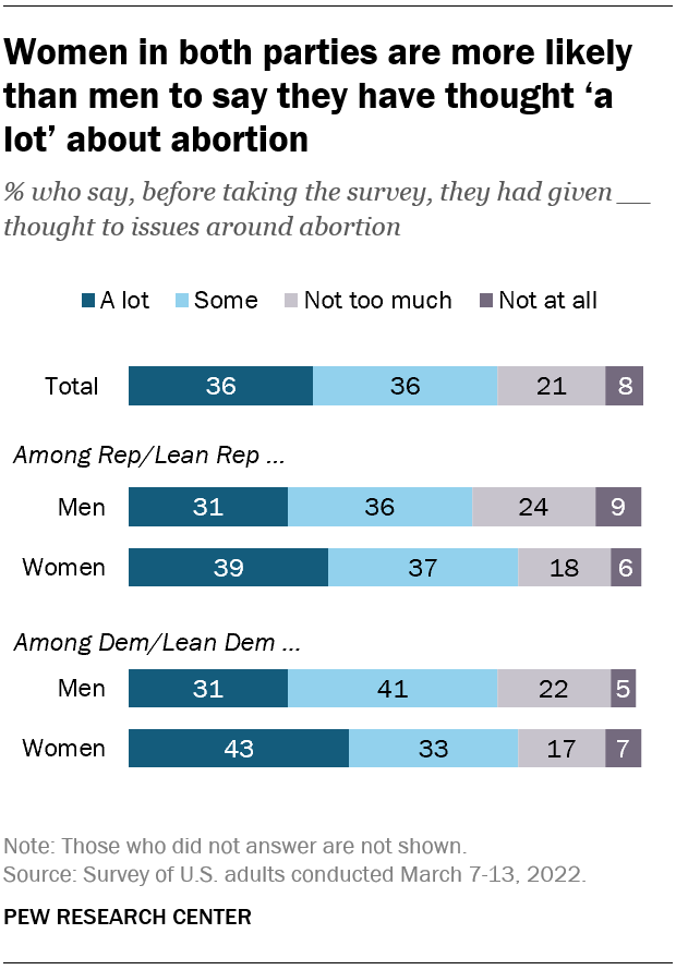 DownloadWomen in both parties are more likely than men to say they have thought ‘a lot’ about abortion ← Prev Page 1 2 3 4 5 6 7 Next Page →