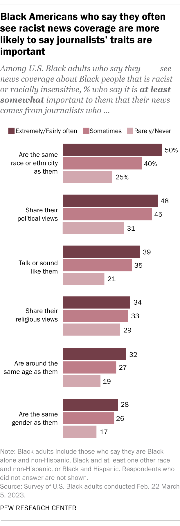 DownloadBlack Americans who say they often see racist news coverage are more likely to say journalists’ traits are important ← Prev Page 1 2 3 4 Next Page →