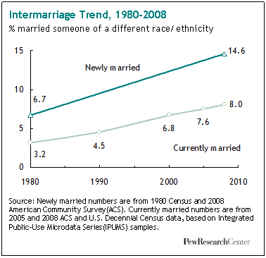 That figure is an estimated six times the intermarriage2 rate among newlyweds in 1960 and more than double the rate in 1980.
